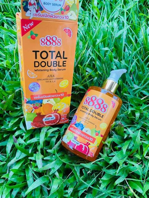 8888 Total Double Whitening features Lotion, Serum, Soap & Underarm cream. With Gluta x10 Vit C, E A combination of fruit whitening soap.